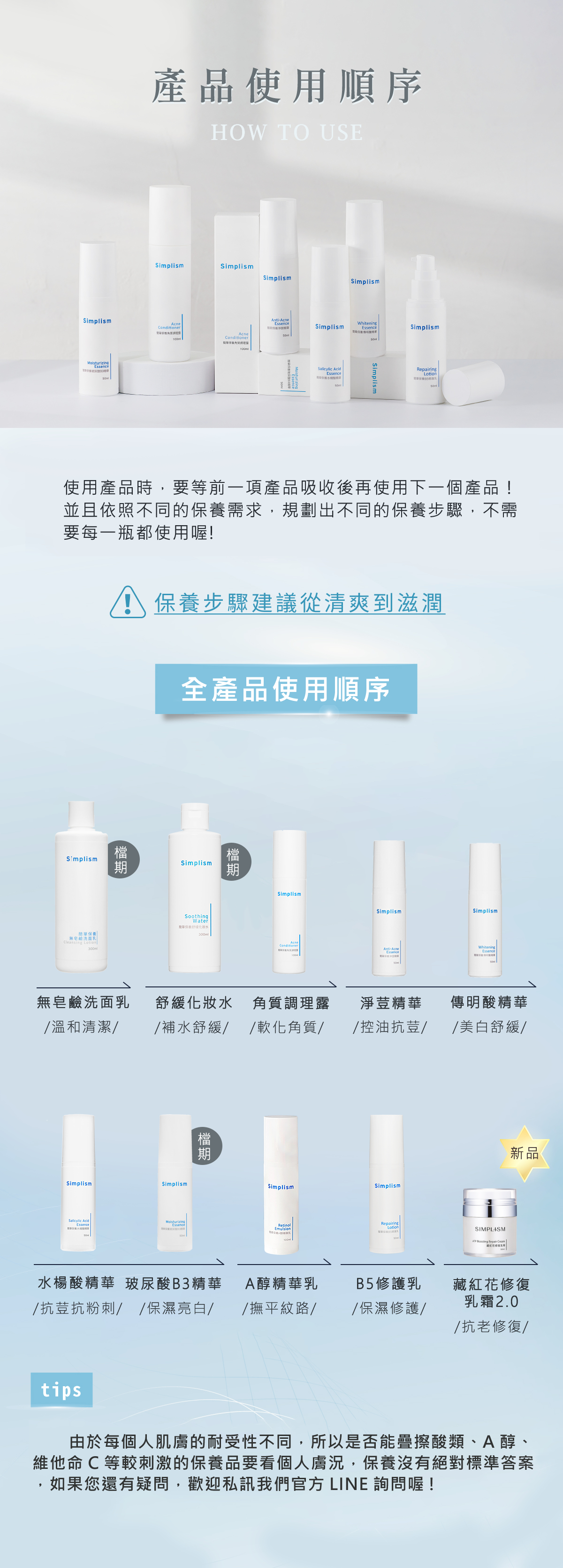 Simplism簡單保養系列商品使用順序