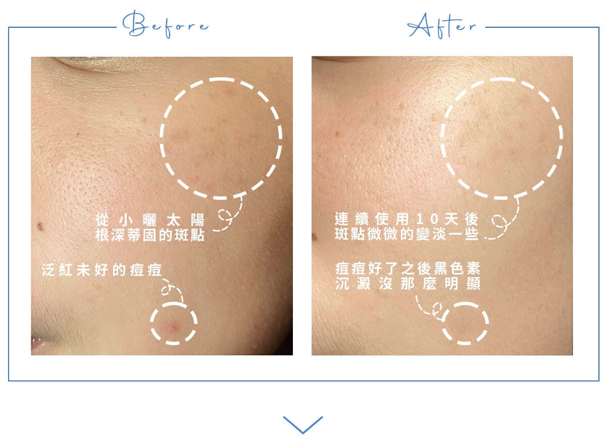 - 長荳荳處也可以安心使用!淡化荳荳發生後的產生的色素,溫和美白。
