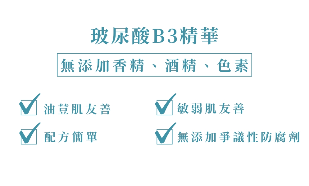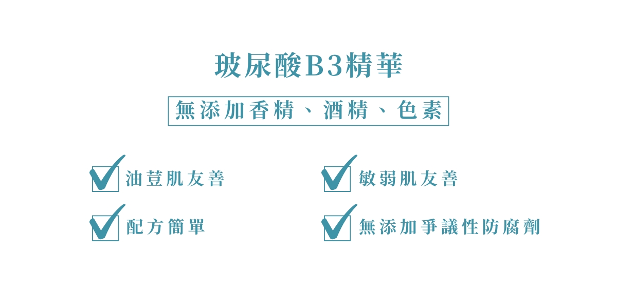 - 主成分:玻尿酸、2%菸鹼醯胺(維他命B3)。